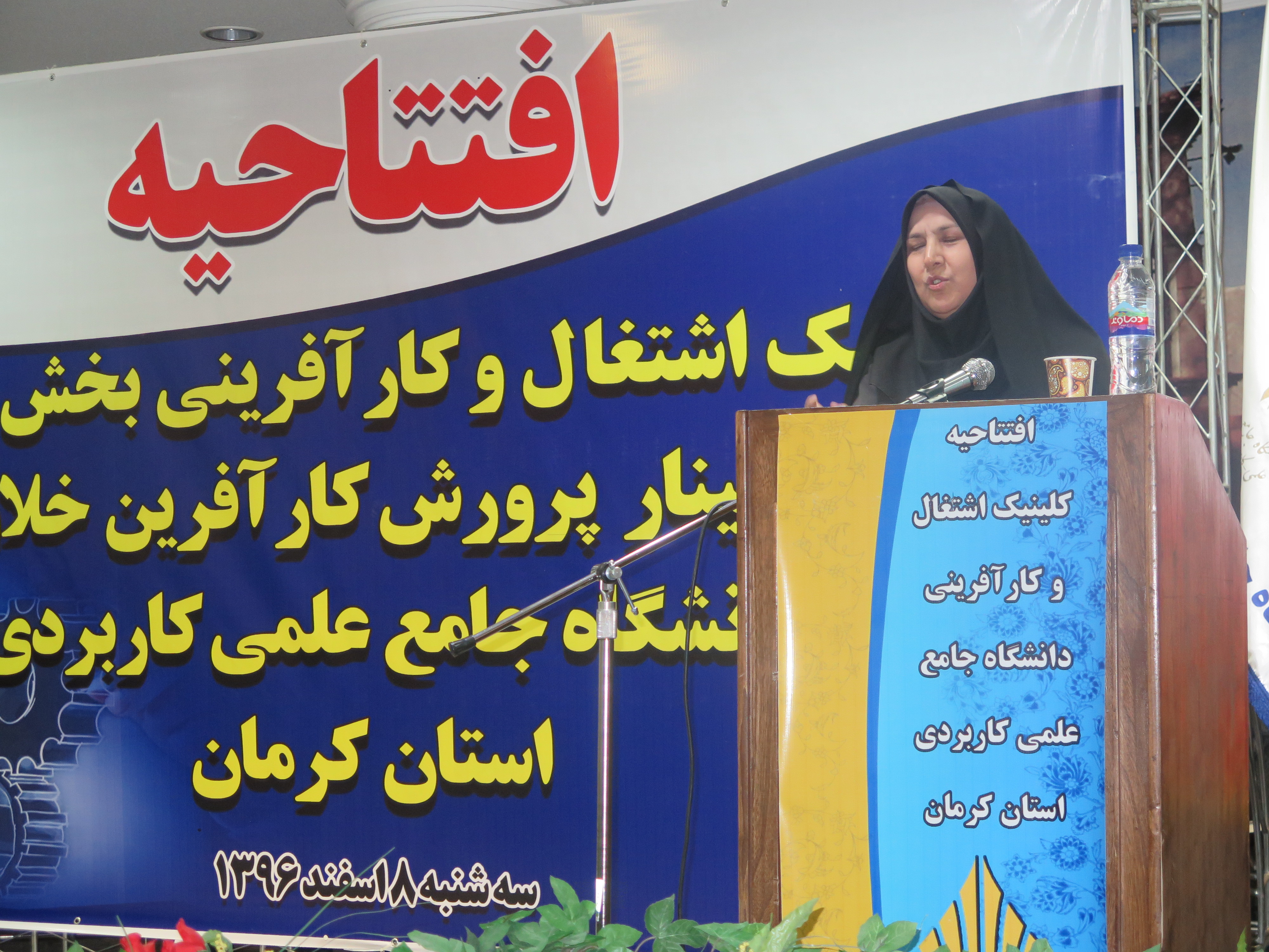 امروزه نه تنها در استان کرمان که در کل ایران نیاز به انقلاب در حوزه کارآفرینی داریم انتظار ما از کلینیک کارآفرینی دانشگاه جامع علمی کاربردی این است که پایگاه و مرجعی برای کسانی که دانش را در اختیار دارند اما راه ایجاد و توسعه یک کسب کار را نمی دانند باشد .