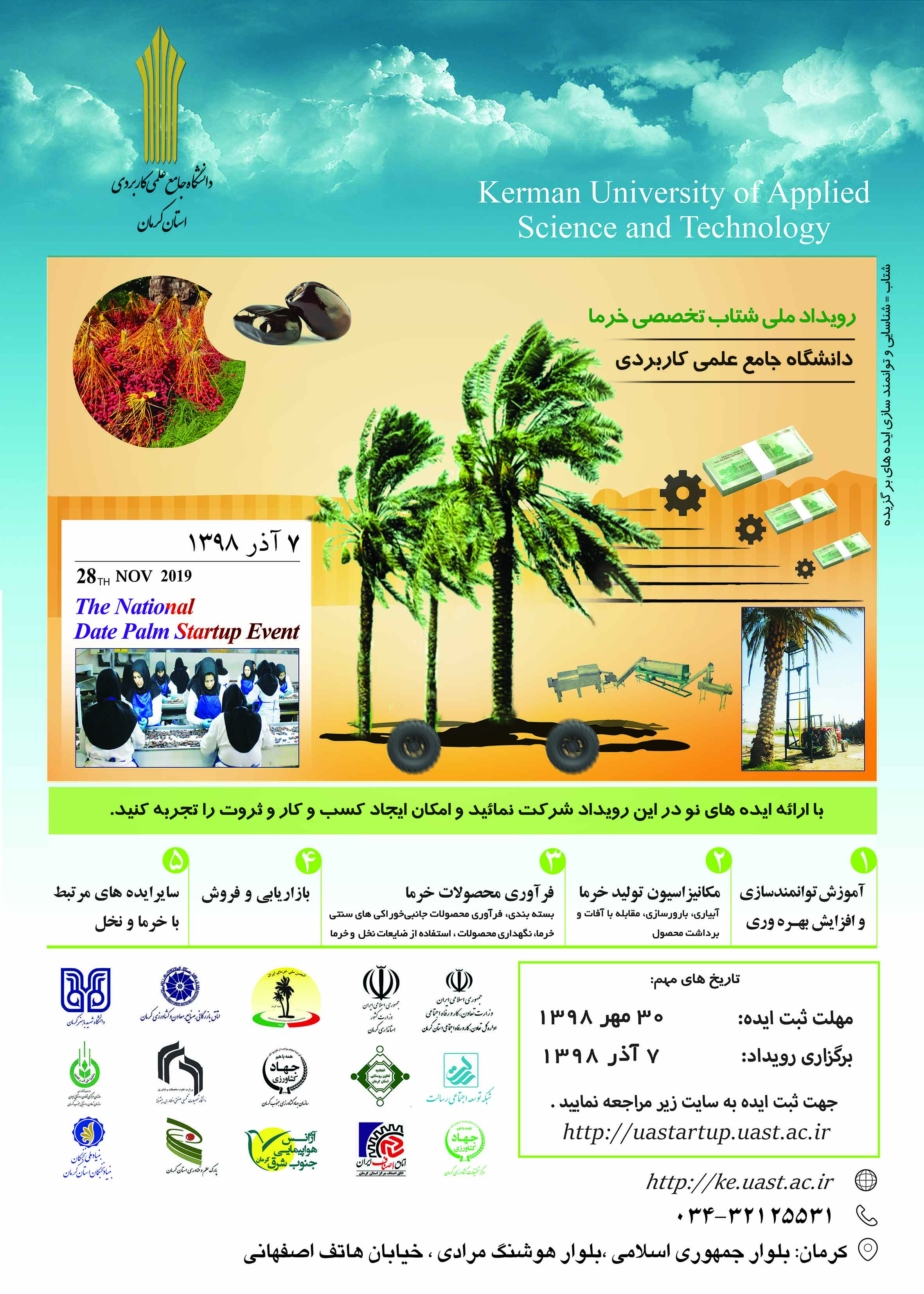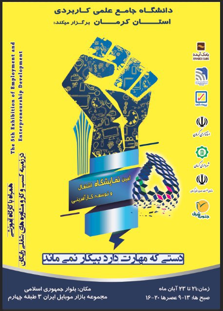 مجلات و همایش ها ارسال به دیگران نام شما ایمیل شما ایمیل دریافتکننده ارسال انصراف پنجمین نمایشگاه اشتغال و توسعه کارآفرینی رویداد ملی شتاب خرما استان کرمان